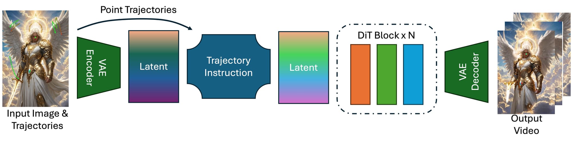 ATI takes an image and user-drawn motion paths, then generates video following those exact trajectories. Instead of describing movement in text prompts, you draw where things should go.