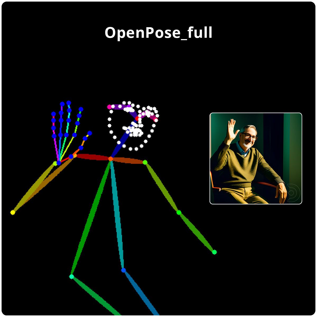 - OpenPose_full combines all the key points detected by OpenPose, including facial details and hands/fingers.