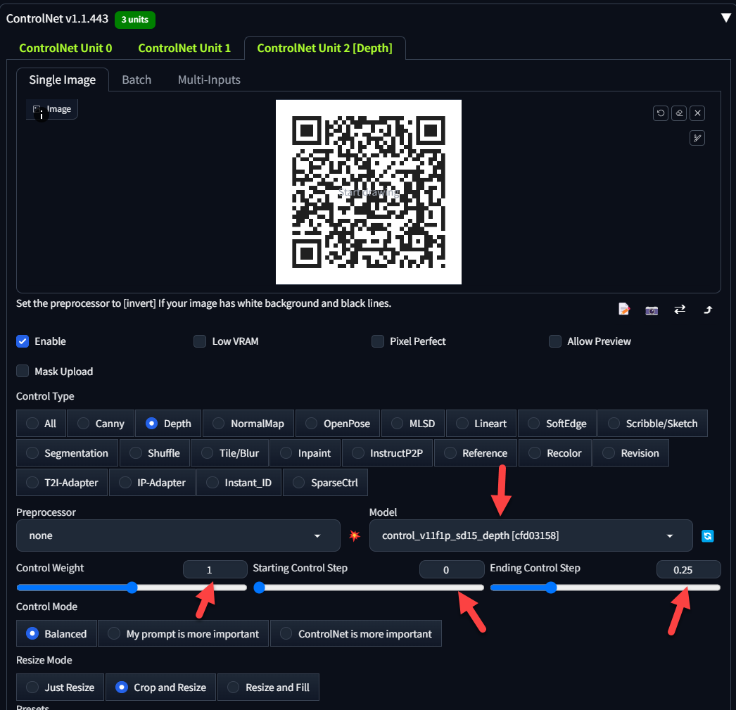 - (2) Within ControlNet Unit 1 we want to upload our qr code again