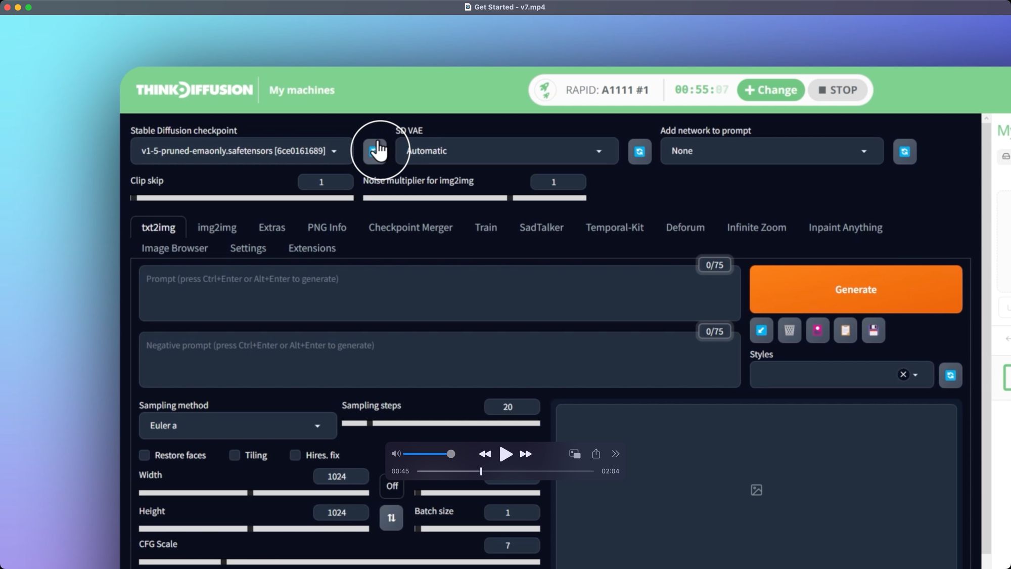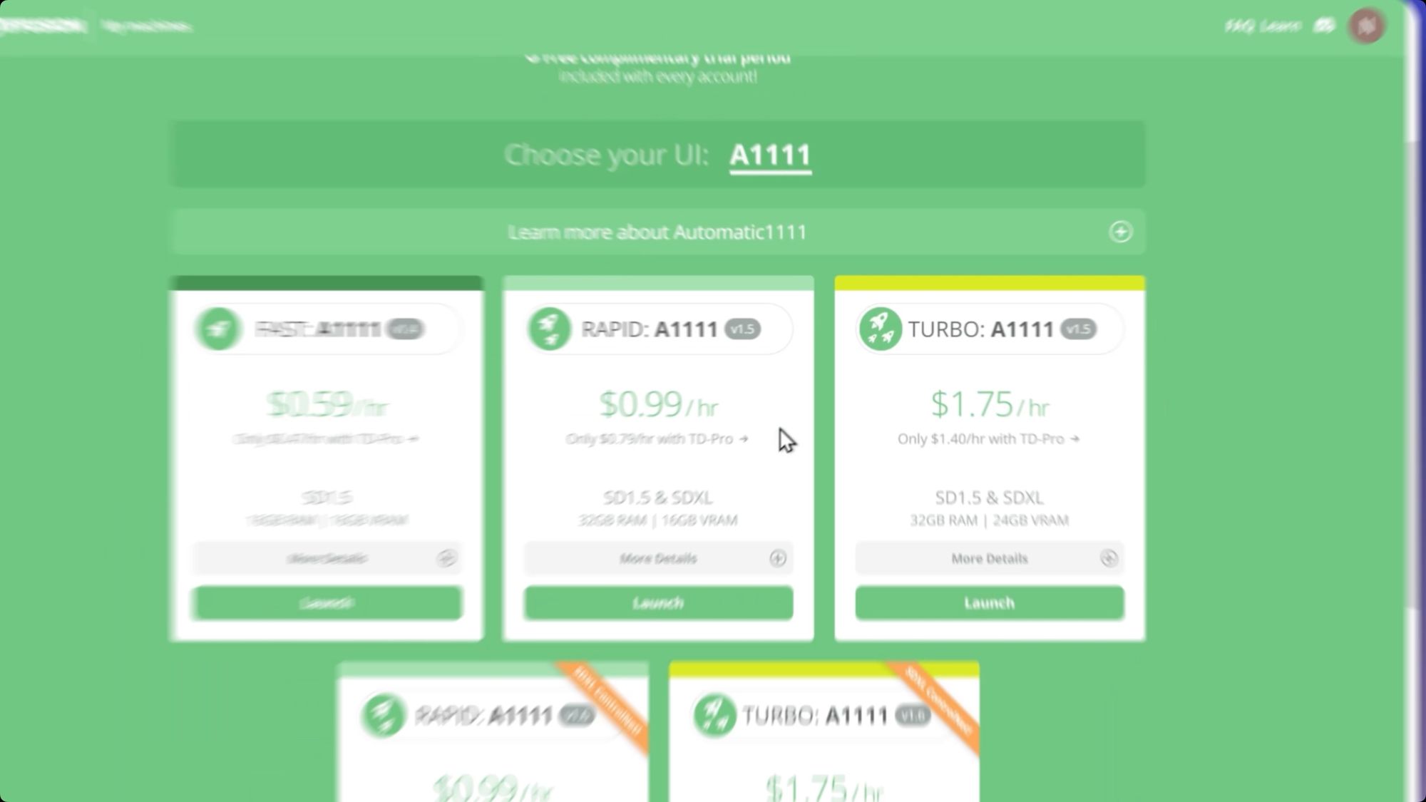 I’ve already logged on, and chosen Automatic1111, the most powerful & widely used interface, as my UI.