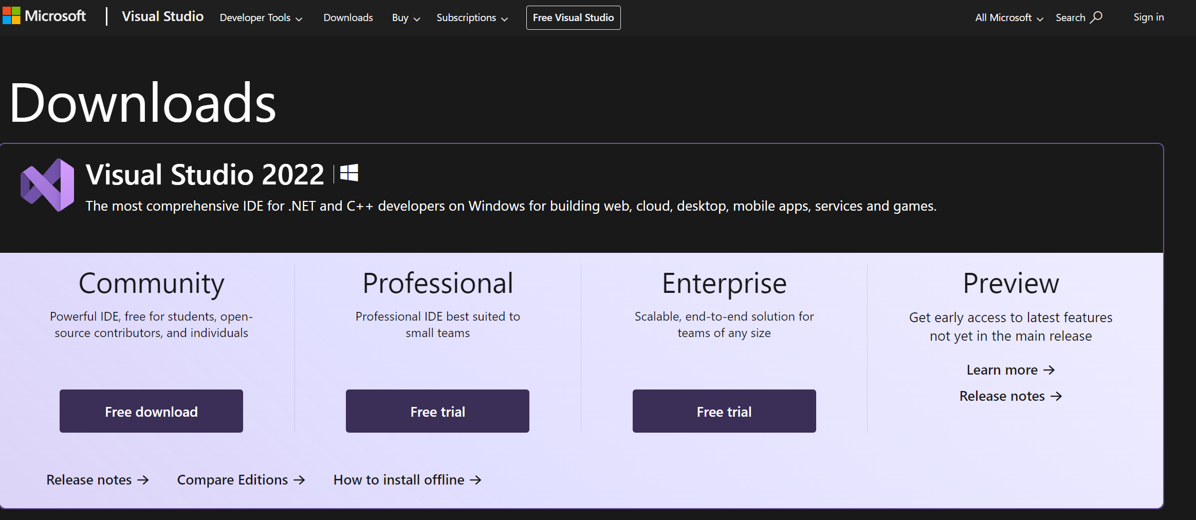 - Download the free community edition: Visual Studio