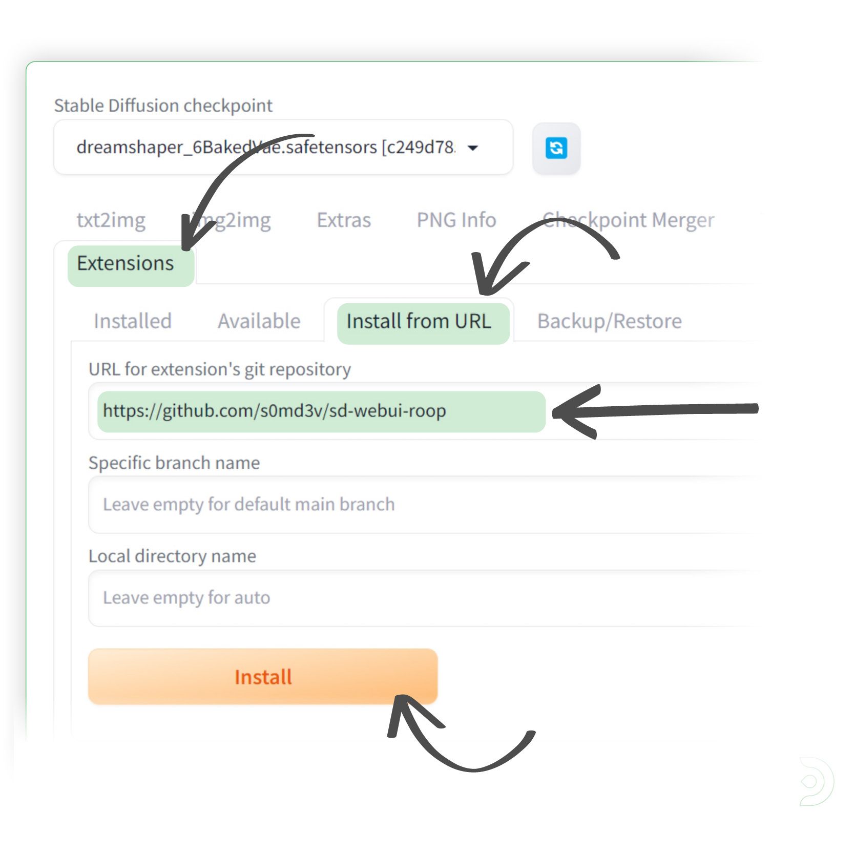 We are now ready to install Roop as an extension.