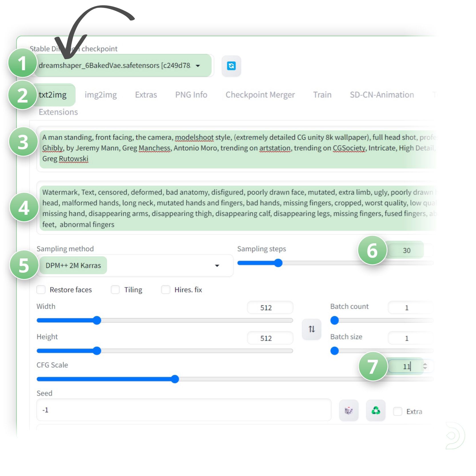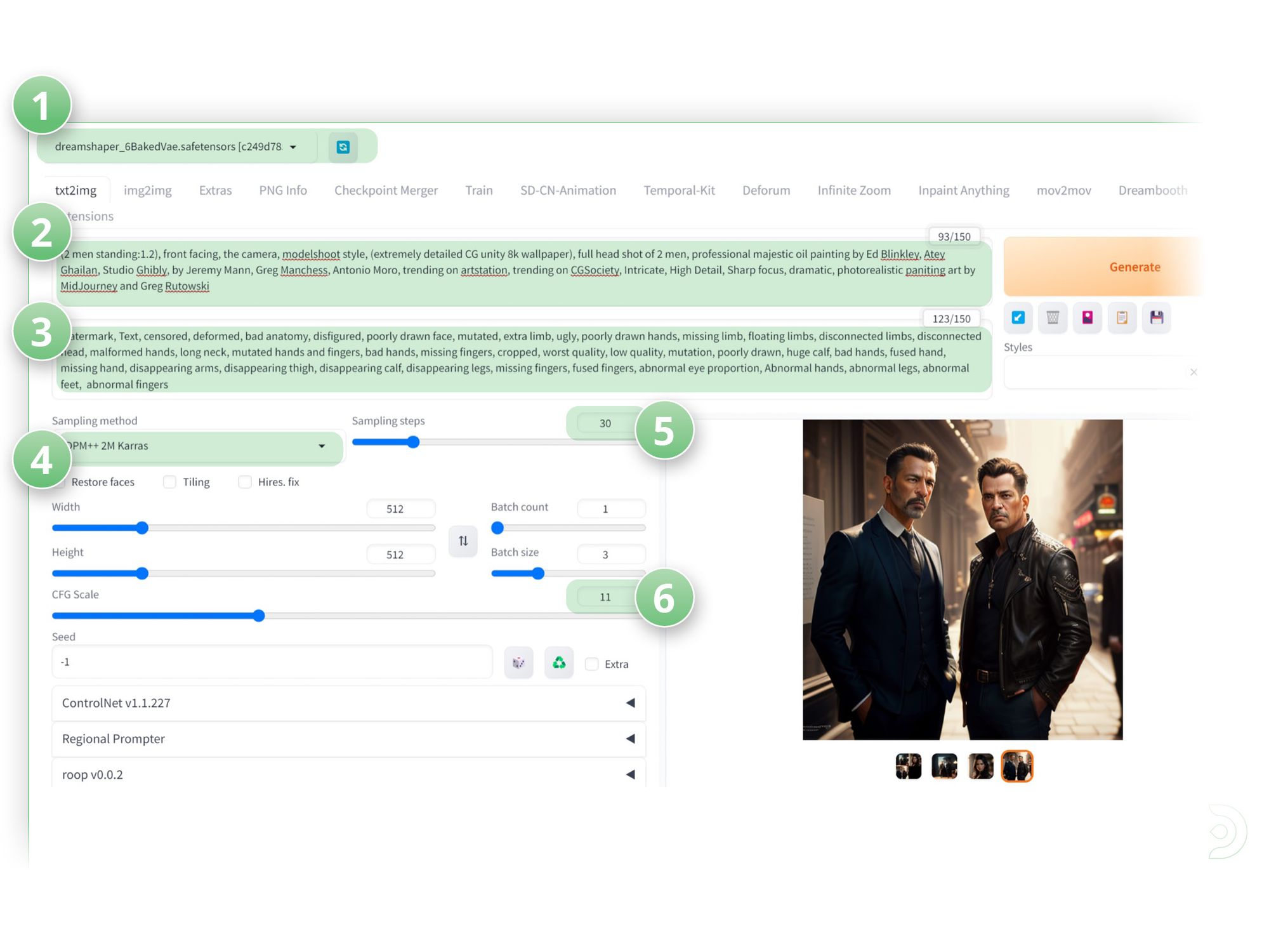 - (1) Set the Stable Diffusion Checkpoint to dreamshaper_6