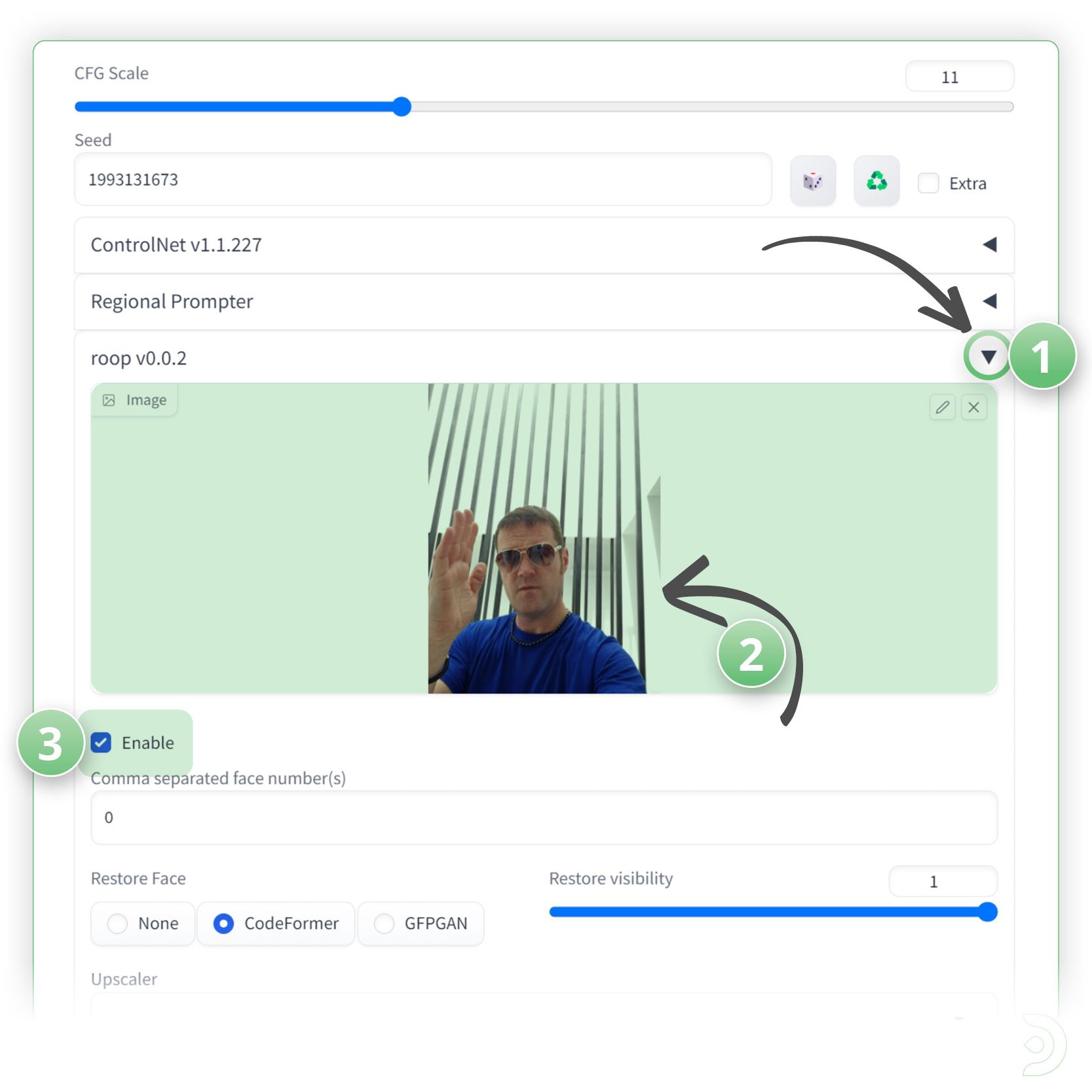 - Click Enable to make sure Roop is activated ✅