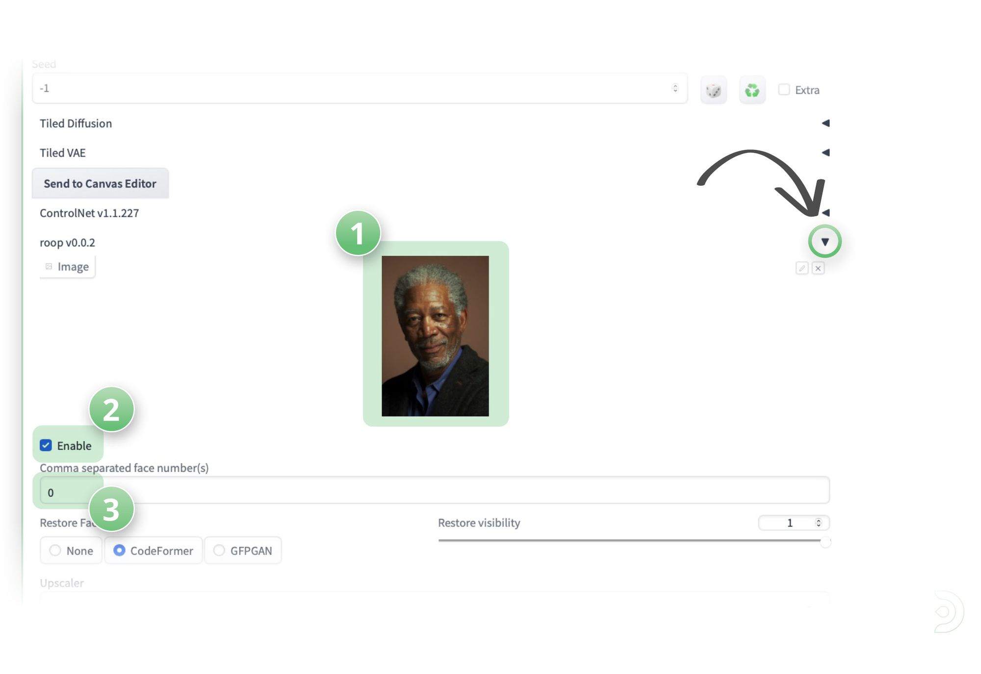 - (3) Clicking Restore faces ✅