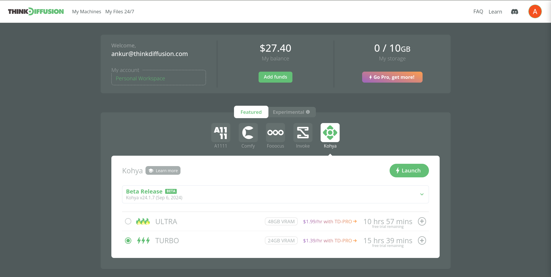 - We then need to launch an ComfyUI machine and upload our LoRA's into the