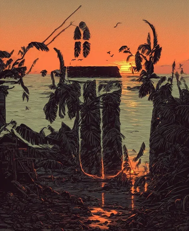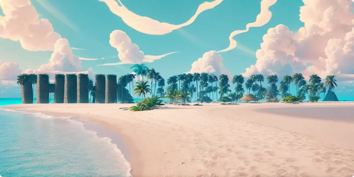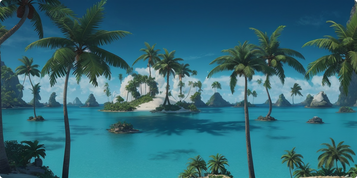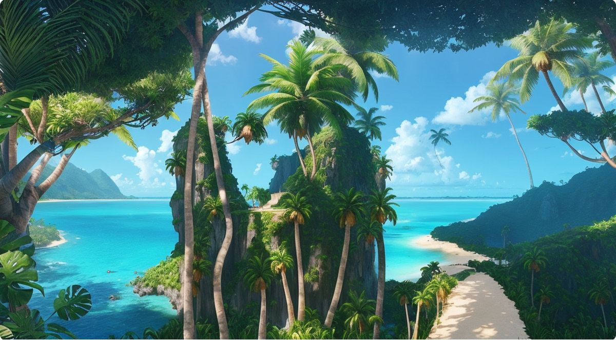 - Tropical island, beautiful light, palm trees, 4k, ultra detailed, masterpiece