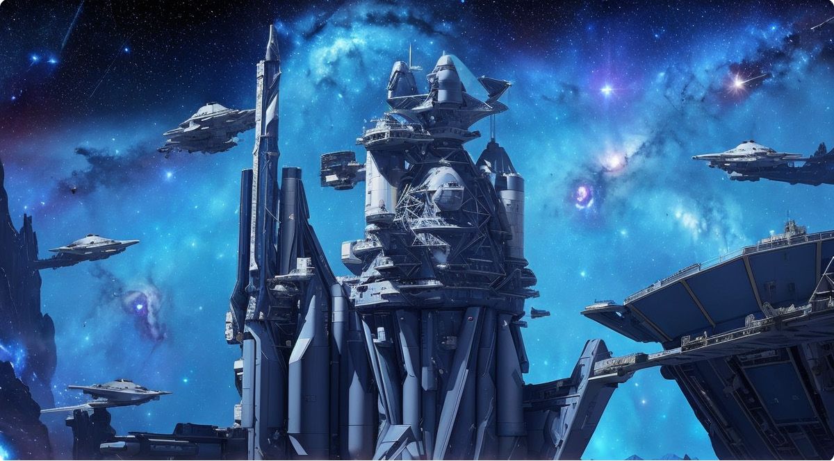 - Space station, beautiful light, stars, nebula, 4k, ultra detailed, masterpiece