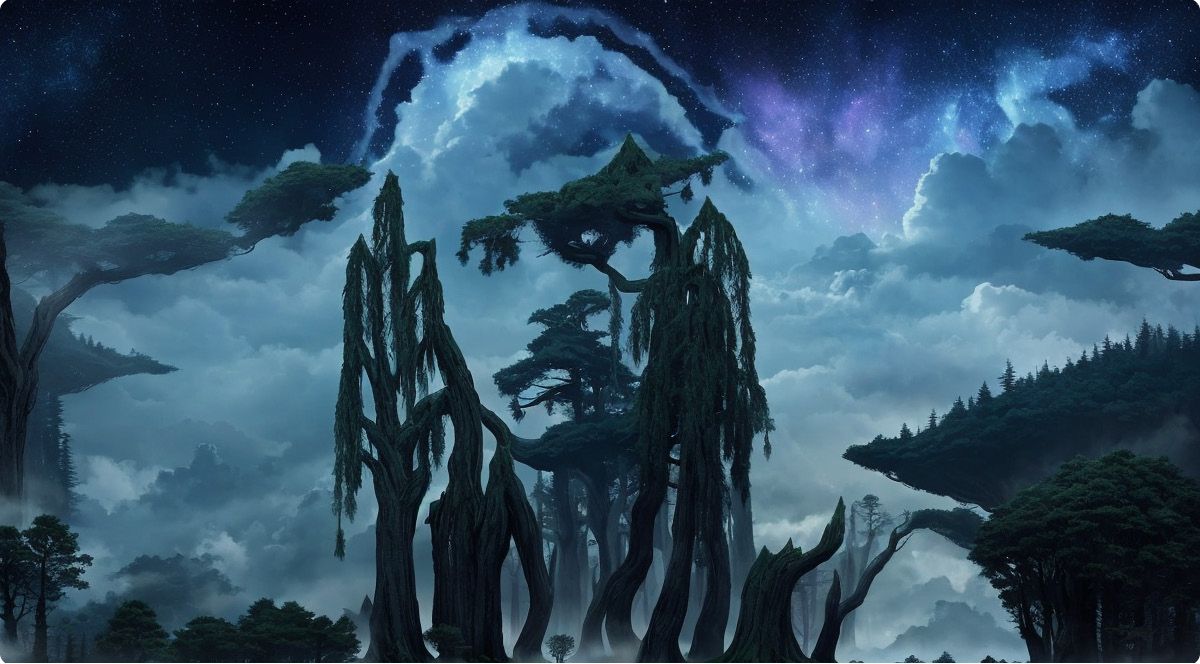 - Fantasy forest, twilight, stars, clouds, 4k, ultra detailed, masterpiece