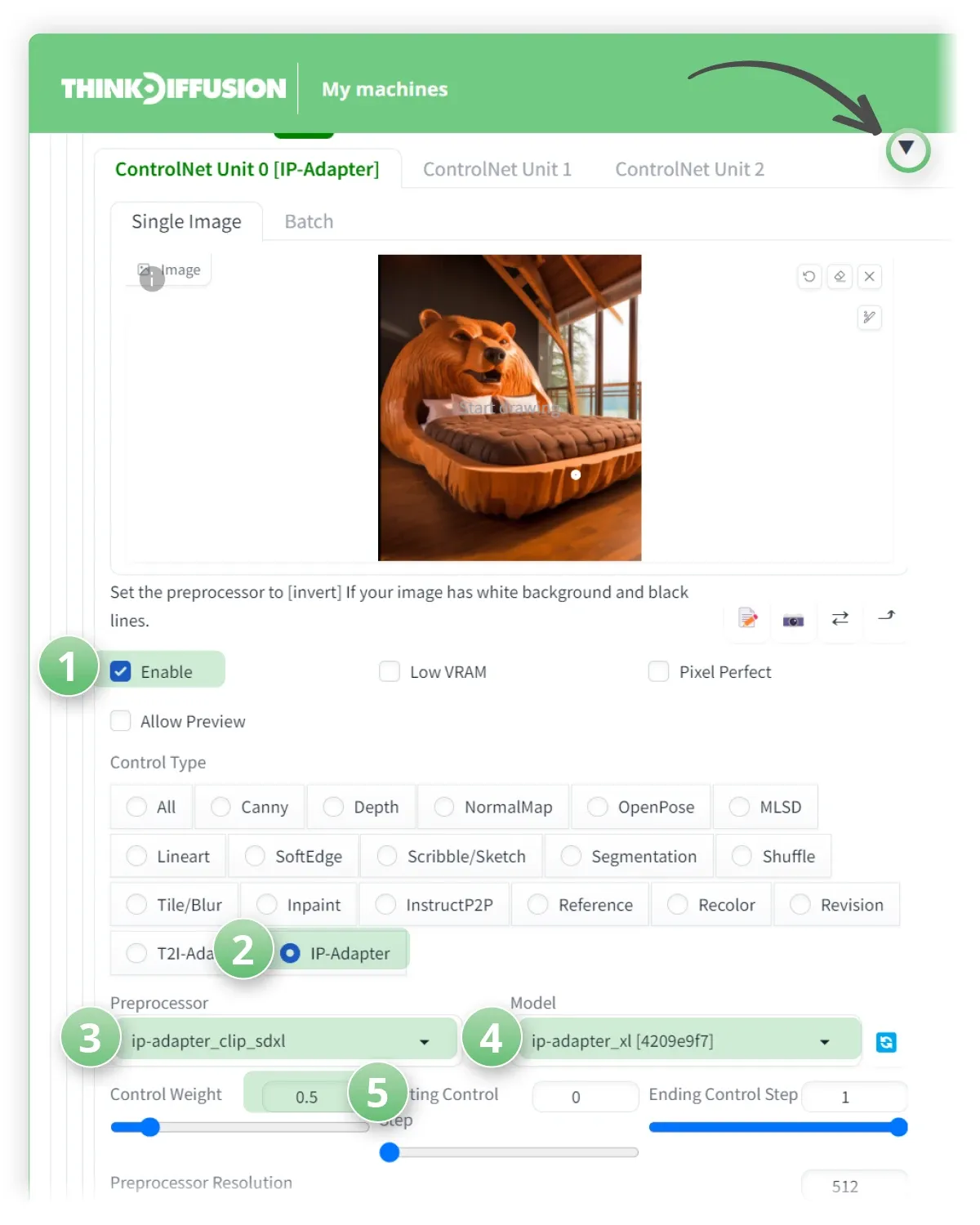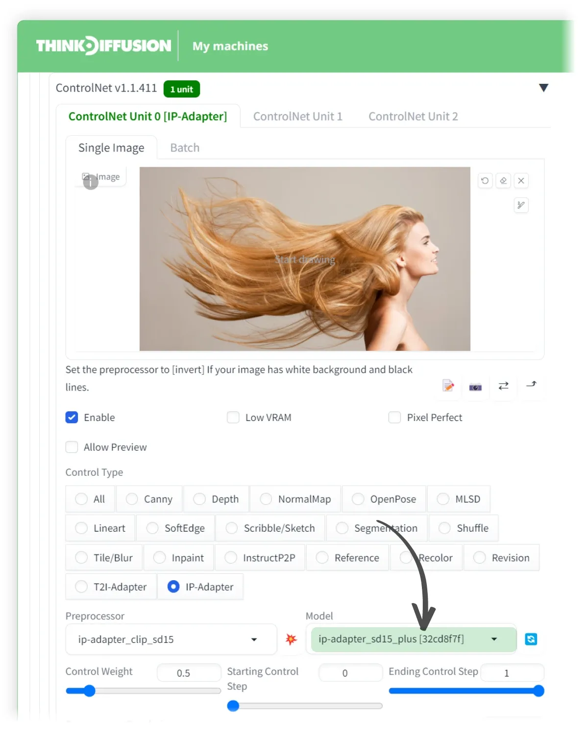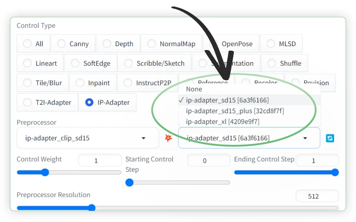 - (4) Set the ControlNet model to: ip-adapter_xl