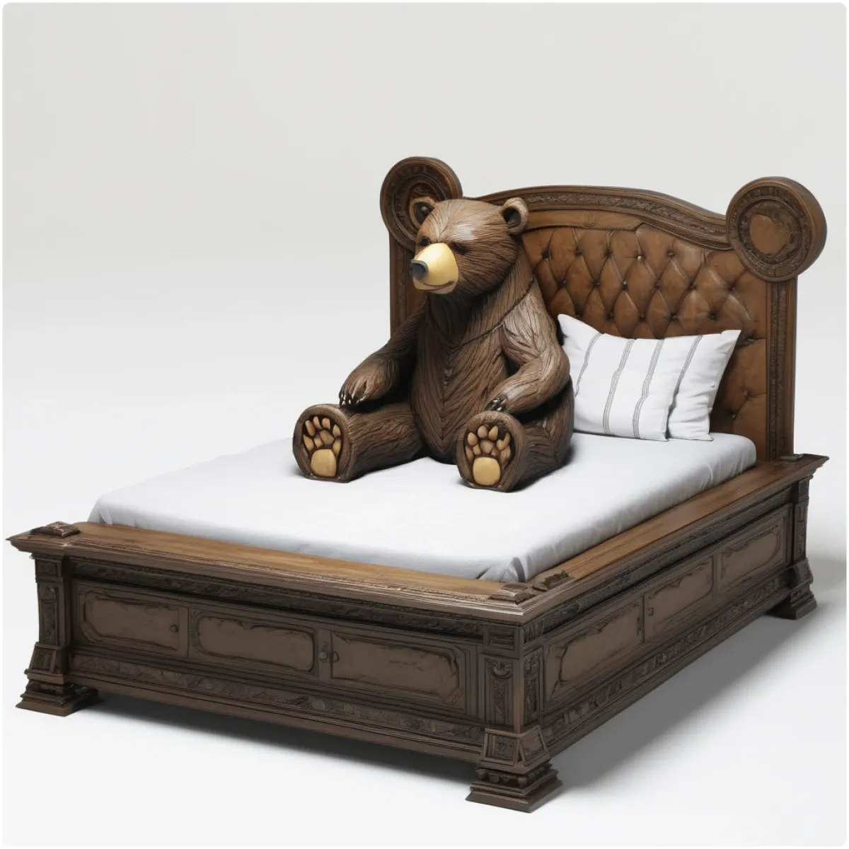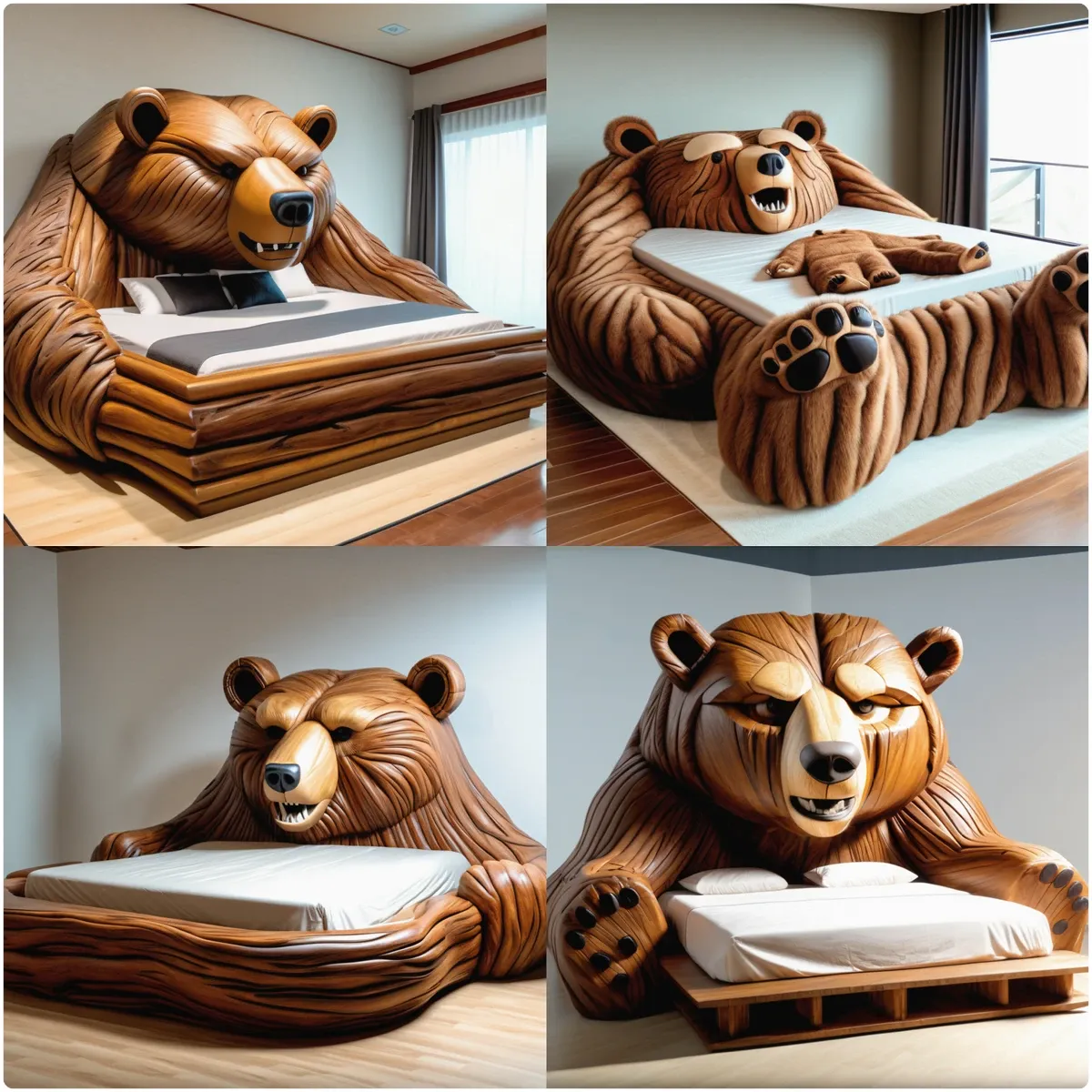 A bed shaped like a bear, masterpiece, 4k, ultra detailed - (3) Negative prompt: bokeh