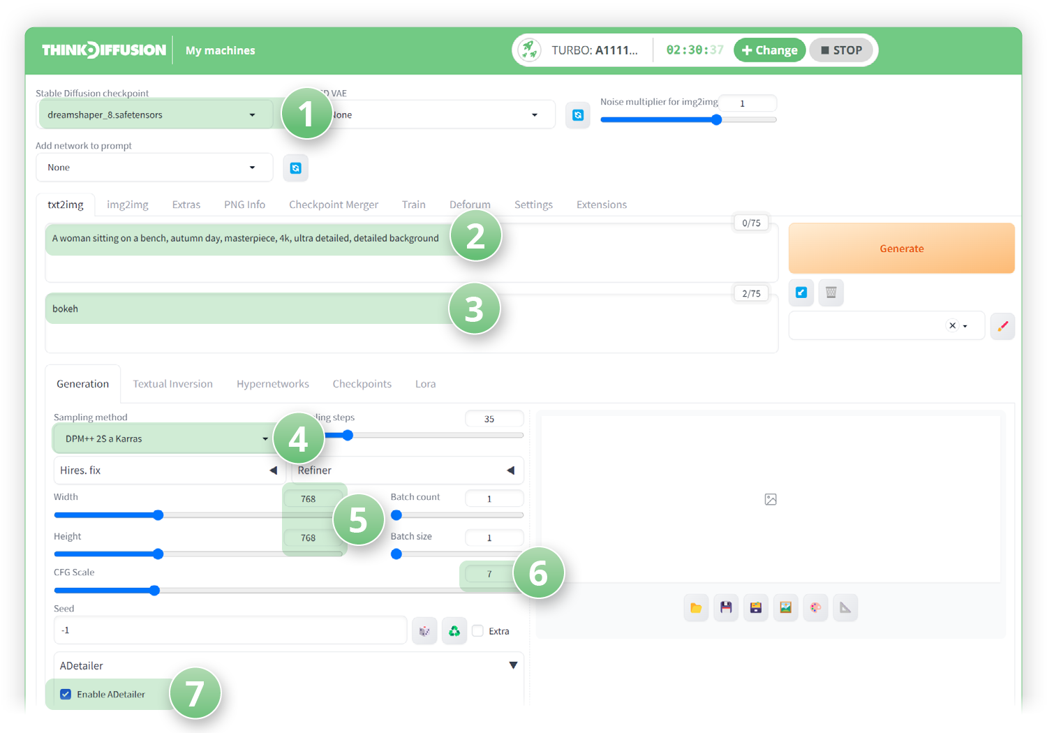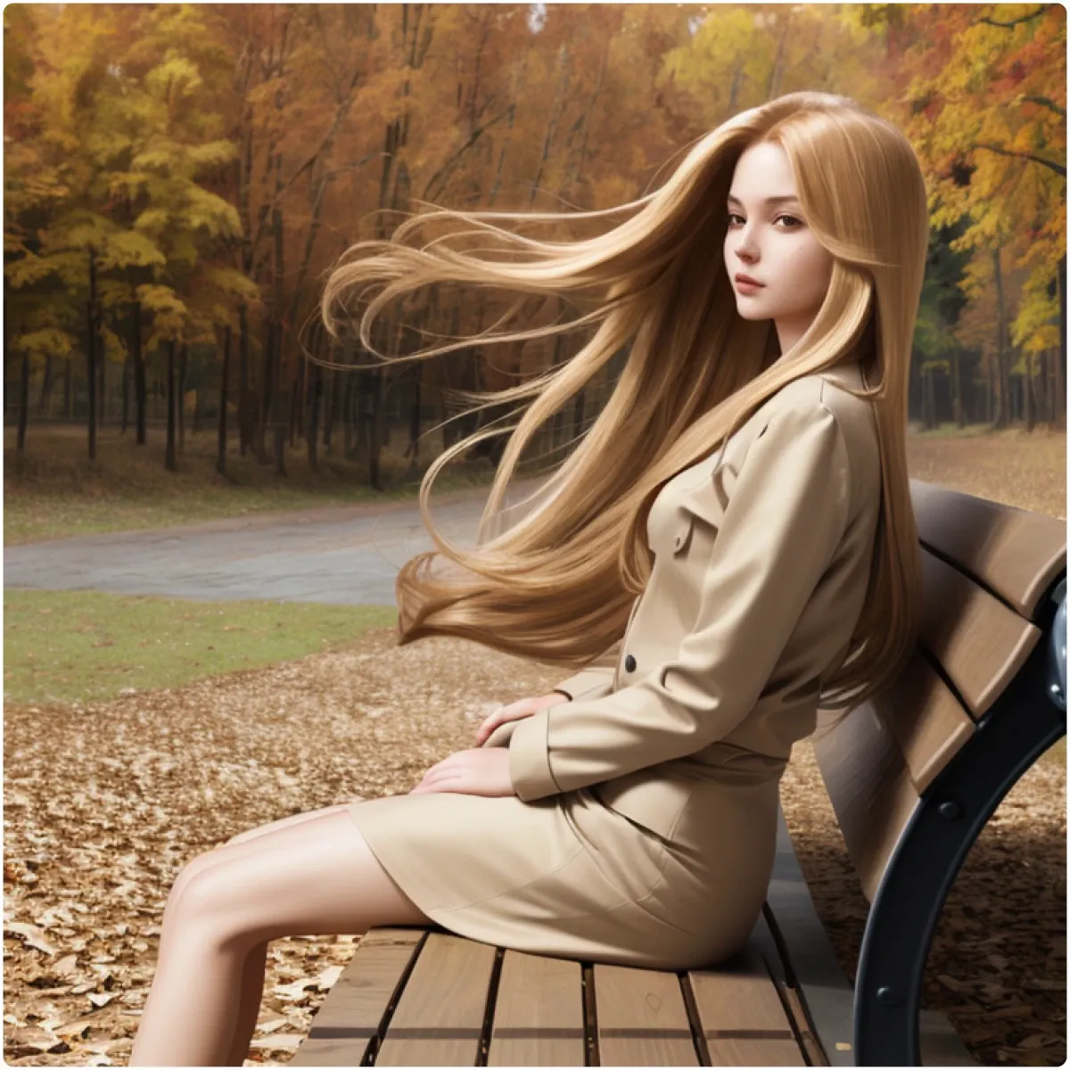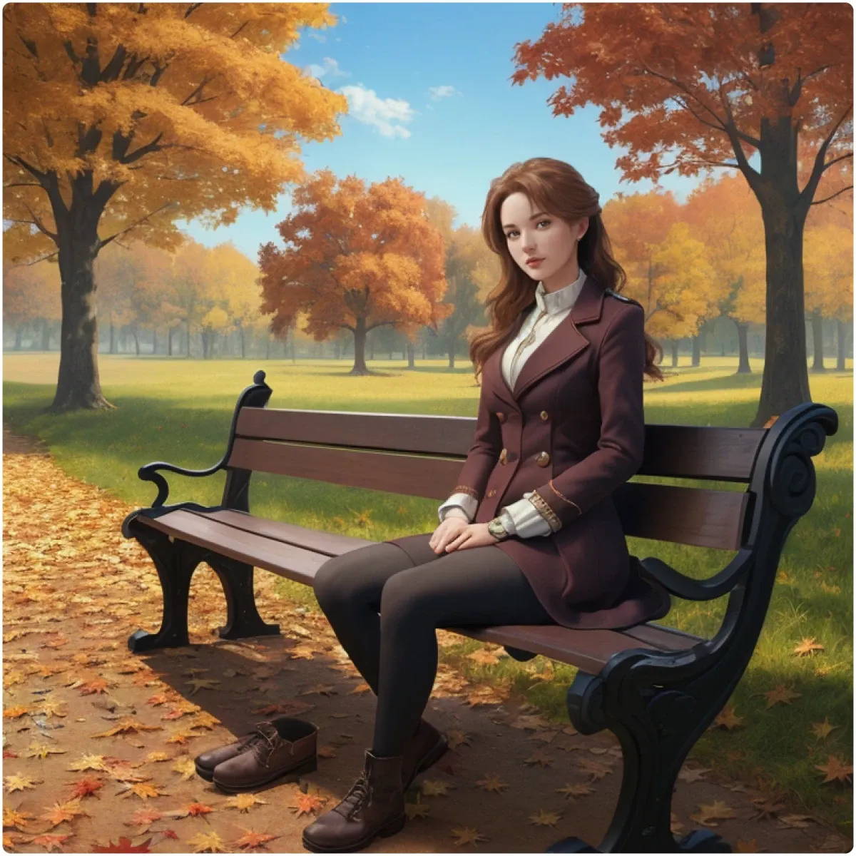 - (2) Positive Prompt: A woman sitting on a bench, autumn day, masterpiece, 4k, ultra detailed, detailed background