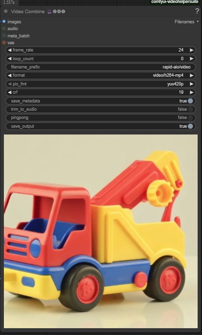 ComfyUI v0.3.57 with the use wan2.2-rapid-mega-aio-v1.safetensors