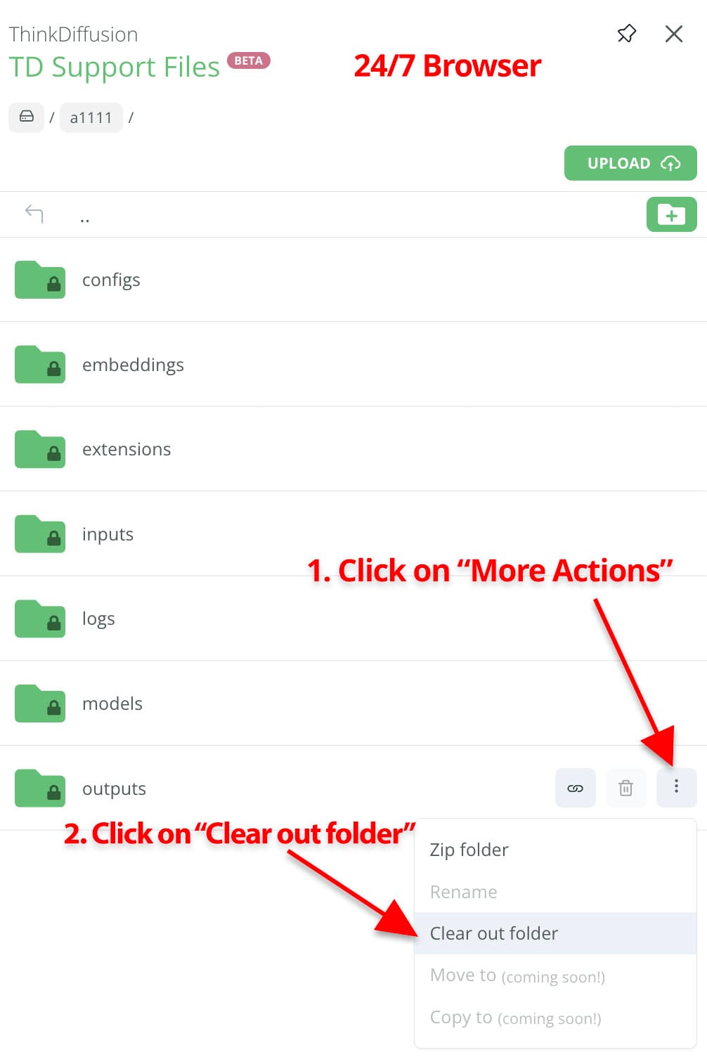 Today we have rolled out a small update to both File Browsers so you can clear out your outputs folders whenever you want!