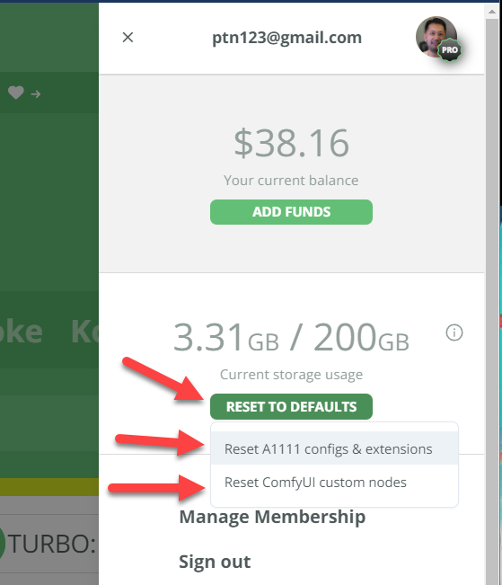 Now you no longer need to resort to such measures for a fresh start on your A1111 or ComfyUI instances. We've introduced a "Reset to Default" button in the right-hand side panel, allowing you to easily reset your A1111 or ComfyUI back to the default ThinkDiffusion settings.