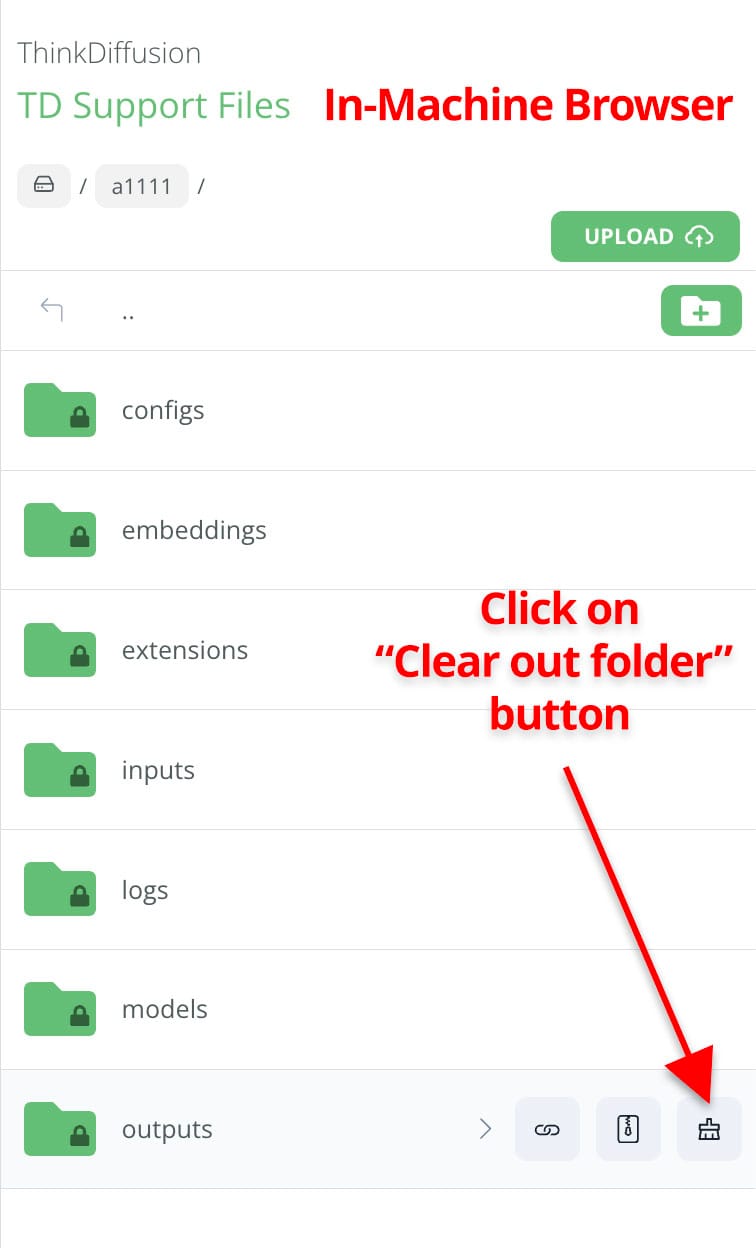 The operation is similar in both File Browsers, but the button to clear out the outputs folders is located in different places. You can see where to find the button in each File Browser in the attached screenshots.