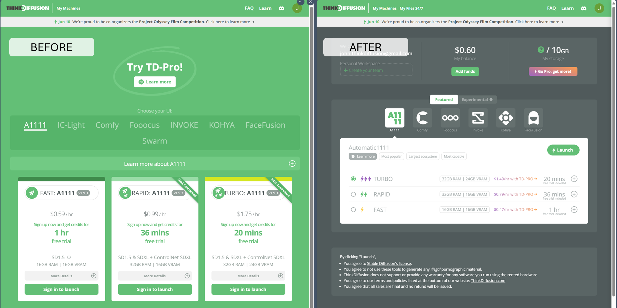 Some resourceful users found a workaround by using applications like Fooocus to access the file browser. They would then delete all files in the a1111/configs/ and a1111/extensions/ directories, effectively resetting their A1111 instance to its default settings, which resolved the issue upon the next launch. (BTW if you're a TD-Pro member you can always access your files with My Files 24/7 without launching a machine)