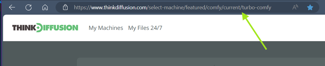 https://www.thinkdiffusion.com/sd/<machine_name>, - Open a new tab and enter the a new url using your machine id machine id: