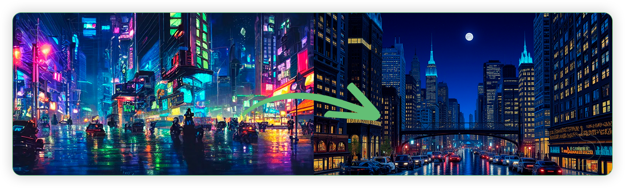 - Style transfer: Apply artistic styles to existing images