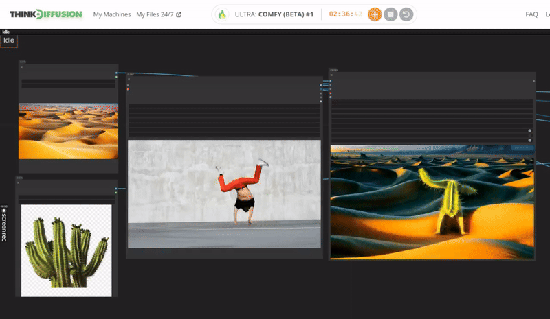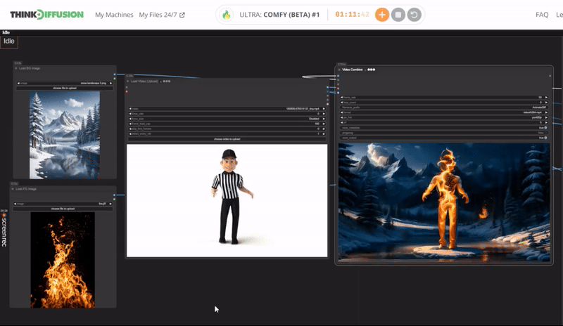 Download the workflow and drag & drop or 'Load' it into your ComfyUI window, whether locally or on ThinkDiffusion. If you're using ThinkDiffusion, use the ComfyUI machine. It's necessary to use at minimum the Turbo 24gb machine, but we do recommend the Ultra 48gb machine.