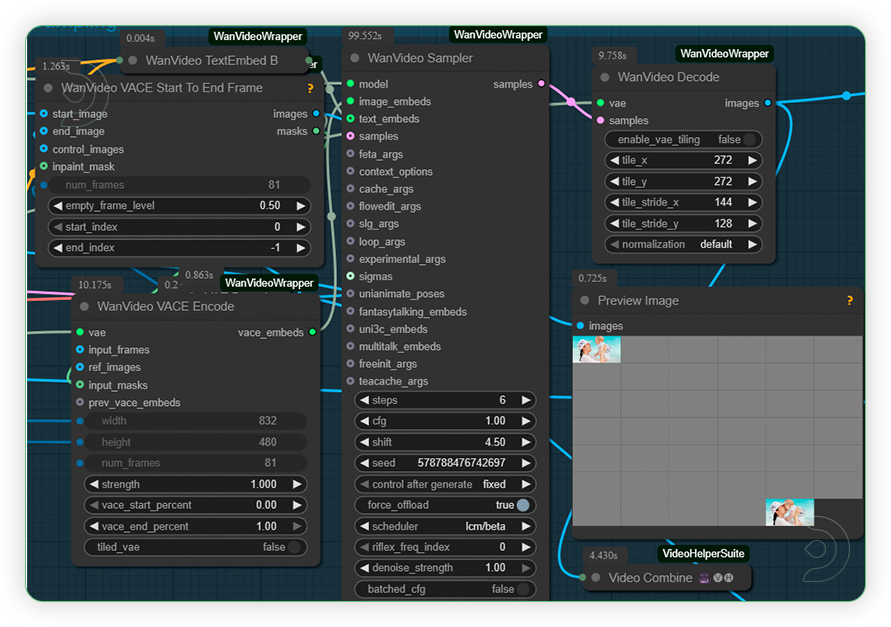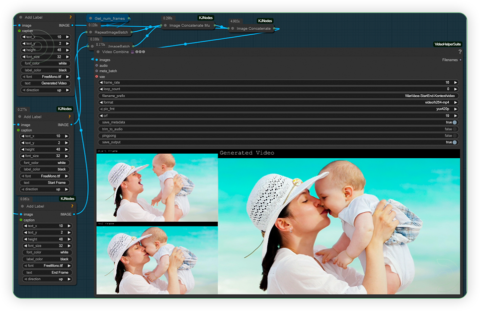 By combining VACE and Flux Kontext in the Wan Start-End Frame workflow, users gain the ability to craft sophisticated, professional-grade animations with smooth transitions, reliable subject identity, and creatively controlled scene evolution that simply isn’t possible with basic interpolation alone.